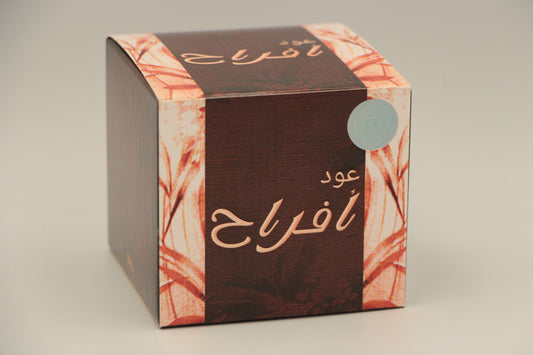Bakhoor Oud « Afrah » (60g) est votre compagnon idéal pour les occasions festives, libérant des notes de musc, de rose, et de bois de santal qui ensemble, créent une atmosphère de joie et de célébration.